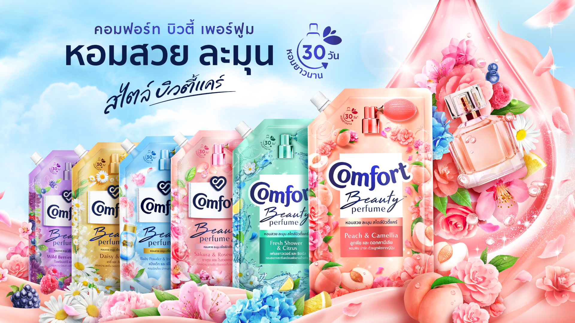 คอมฟอร์ท ผลิตภัณฑ์ปรับผ้านุ่มที่ให้กลิ่นหอมละมุนเหนือระดับ ด้วยการปรุงน้ำหอมอย่างพิถีพิถัน และคัดสรรจากวัตถุดิบเลอค่า ก่อเกิดเป็นกลิ่นหอมละมุน เป็นเอกลักษณ์ พร้อมหอมติดทนยาวนาน 30 วัน ให้คุณรู้สึกสดใส มั่นใจในทุกๆ วัน และคอมฟอร์ท อยู่เคียงข้างคนไทยมาตั้งแต่ช่วงทศวรรษ 1980